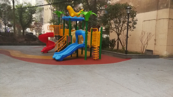 ????記者在社區現場看到,3個原本雜亂的廣場,經過精心打造,地面鋪上了整齊的防滑磚,增添了新座椅,不少地方還用“堰興剪紙”元素裝點。在社區廣場入口區設置高8.8米,寬10米的門坊,抬頭書寫著“聚福家園”,在另一個廣場中還劃分出兒童游樂區,地面是紅黃綠的彩色混凝土,還添置了滑梯等游樂設施,并在附近增設休息亭。廣場的南面增設羽毛球場,旁邊還有齊全的運動器材。