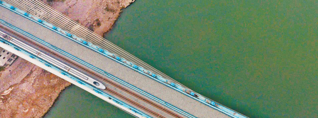 ▲新白沙沱大橋上一列高鐵疾馳而過