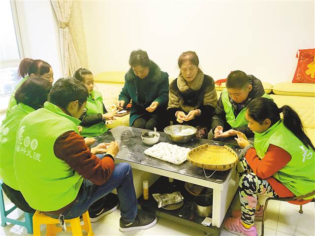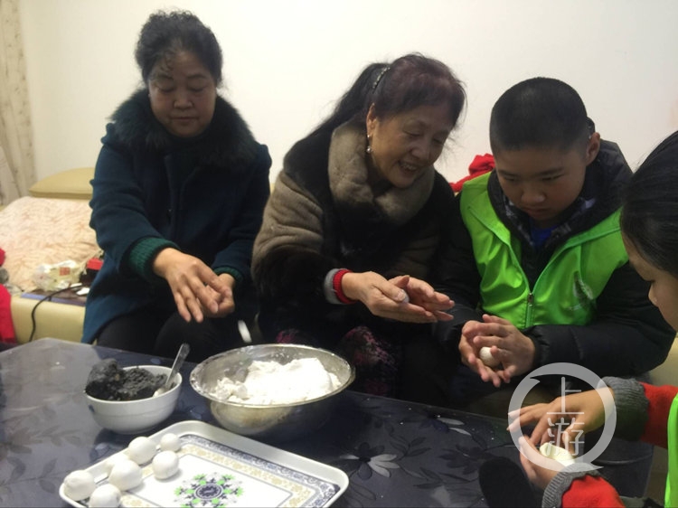 ????11日,9歲的王洪佳起了個大早,把當天的作業(yè)做好后,就拉著爸爸來到住在大渡口九宮廟街道百花社區(qū),她要和其他小朋友一起,提前和中央文明辦評選的2015年度“中國好人”覃婆婆包湯圓"過春節(jié)"。