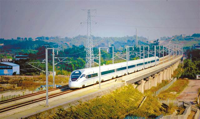 重慶璧山區丁家鎮,高鐵列車高速奔馳。 記者 萬難 攝