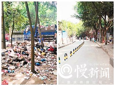 ????昨日下午,和煦的暖陽中,重慶晚報記者來到躍進村街道大堰二村共建路、共建一支路和共建二支路,原來的“馬路市場”已經沒了蹤影。馬路已白改黑,兩旁栽種的小葉榕已成蔭,盡管上午淅淅瀝瀝下過雨,但鋪設的透水磚,沒有半點積水的現象。原本車輛亂停亂放是個難題,但道路中間設置的隔離樁,讓往來的交通秩序井然。