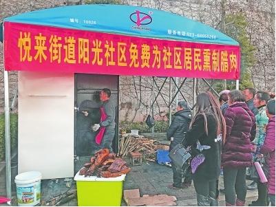 悅來街道免費為社區(qū)居民提供環(huán)保的臘肉熏制服務(wù)