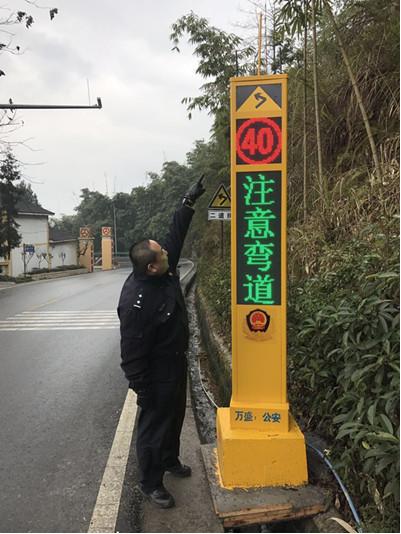 萬盛首個彎道會車預(yù)警系統(tǒng)投入使用預(yù)防交通事故