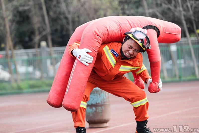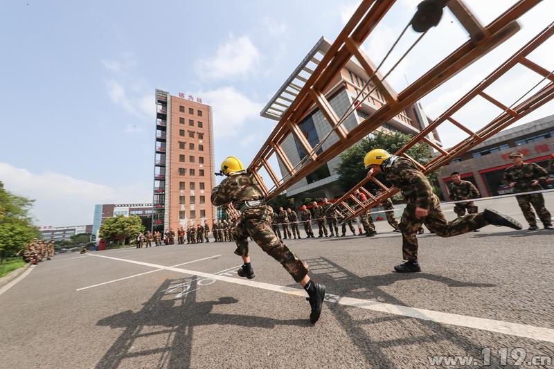 在為期三天的比賽期間,支隊所屬三個執勤中隊共計200余名官兵,在3000米跑、100米負重、400米疏散物資救人、60米肩梯、繩索攀爬、負重上10樓、單杠卷身上、背負空氣呼吸器5000米跑、搬運重物折返跑、水罐消防車80米高層建筑出水操等10個項目中,激烈角逐、一爭高下。