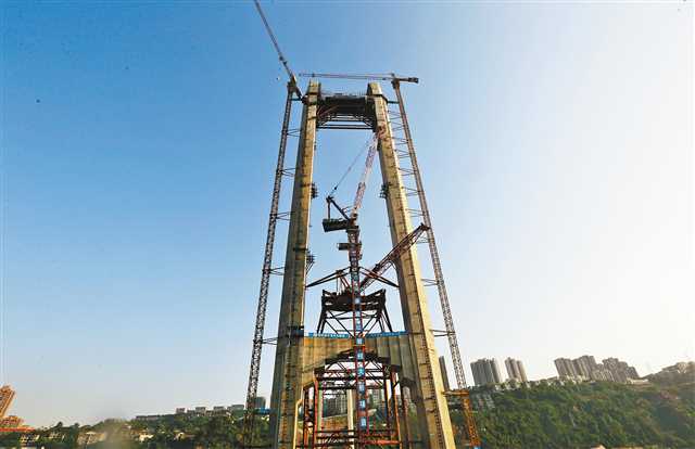 ??? 4月17日,紅巖村大橋建設(shè)現(xiàn)場,架梁機(jī)調(diào)試工作正在進(jìn)行。下月初,大橋建設(shè)將進(jìn)入架梁施工階段,年內(nèi)有望合龍。