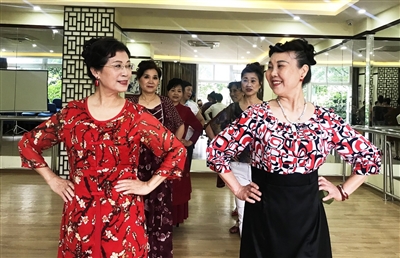 除了保持不錯的身形,隊員們的服裝也更加時尚,傳統與時尚兼備,有旗袍,有職業裝,有晚裝。大家穿上這些衣服,再邁著模特步,傲(昂)首挺胸,從遠處一瞧,就像二十多歲的小姑娘。