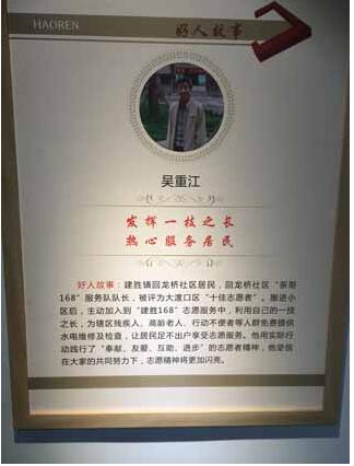 ????在這個200平米左右的好人館內,不光展示了中國好人、重慶好人、大渡口好人,也展示了居民身邊的好人,比如建勝好人和回龍橋好人。除了好人好事,館內還分設好人好言、好人行動、好人文化等板塊,把好人好事的文明風尚映襯得相得益彰。