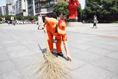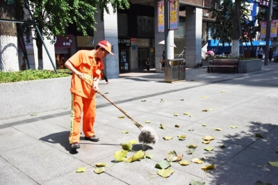 ????“第一遍是普掃,最簡單但也是最辛苦的。”這個時節,正是黃桷樹落葉的時候。一夜過后,前一天干凈的地面,又是厚厚的一層落葉。老余用大掃把“唰唰”地掃著,半彎著腰,凜然有一股大俠的風氣。“這些葉子還好,幾掃把就能掃干凈。但是你看,像這些煙頭啊、口香糖啊、塑料紙啊,就很難清理。”老余彎下腰,用手去撿起藏在地面縫隙之間的煙頭,“這些垃圾如果沒有清理干凈,檢查的時候,一個煙頭就扣我們5毛錢哦。”記者跟在老余身后,見他不斷地彎腰拾撿著。