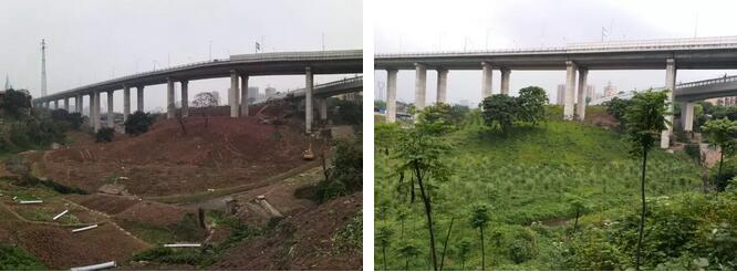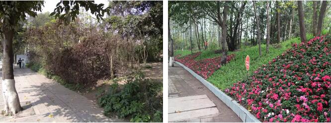 ????▲212國道旁石井坡地鐵站入口綠化整治前、后