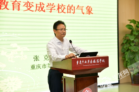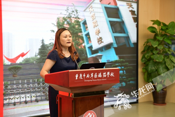 南岸區瑪瑙學校校長廖慶做主題報告 周濤 攝