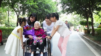 ????經歷了一個世紀的風霜,歲月的痕跡無情地留在了老人臉上,但是她舉手投足間都顯得淡定從容,與親朋言談和藹親切,晚輩們對這位老人都十分尊敬和喜愛。