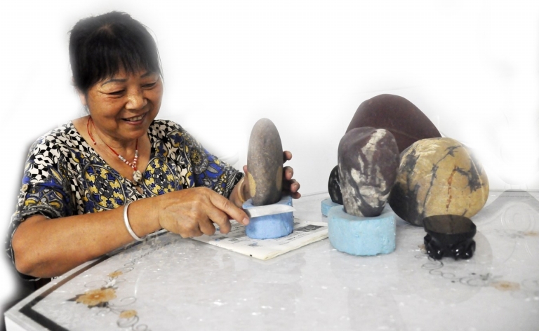 ????在她55歲那年,她開始收藏石頭,如今她66歲,收藏石頭11年。她說:“我收藏石頭不為錢財,只為‘與石共語,以石養(yǎng)性,玩石怡情,且石之有味,其樂無窮,妙不可言。’”