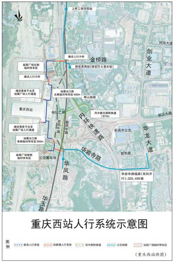 ????(記者 楊永芹)9月9日,來自相關部門和單位消息稱,重慶采取多項綜合舉措,以切實解決鳳中路斷道施工對重慶西站造成的疏解影響問題。舉措包括,新增5條進出站人行通道、兩條車行分流道路和兩個臨時停車區等,項目將于9月底完工投用;新建4車道鳳中臨時替代道路、2米寬人行道和公交車停車港等項目,將于今年底完工;延長公交車收班時間和增開西站到北站的公交化列車等。