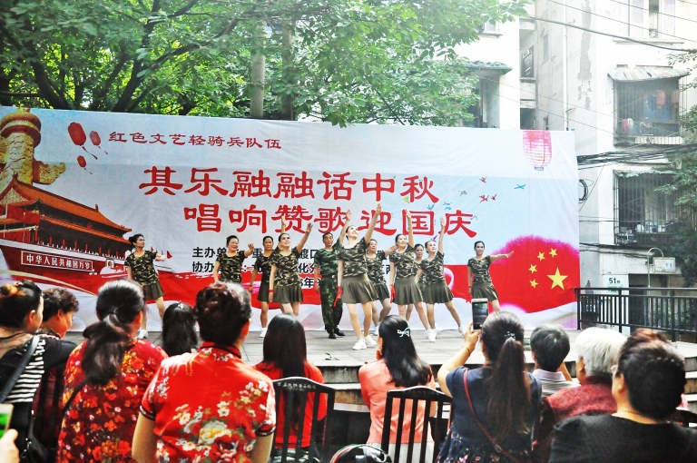 ????(記者 文琰)9月19日上午,由區臺聯主辦,九宮廟街道文化分館、新工社區兩委承辦的“紅色文藝輕騎兵隊伍——其樂融融話中秋 唱響贊歌迎國慶”活動在新工社區院壩舉辦。