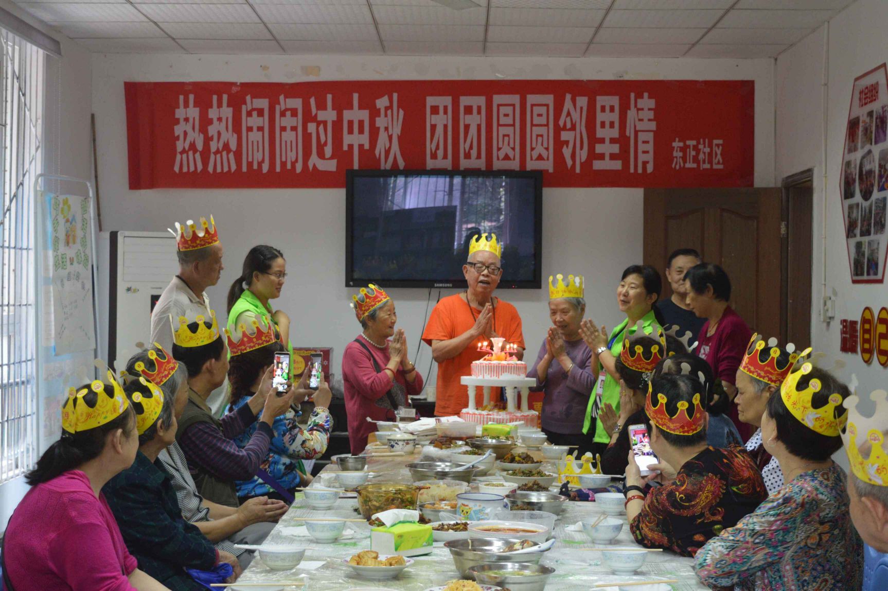 ????“我是7月13日的生日,平時(shí)一個(gè)人住。今天參加這個(gè)集體過生會(huì)真的是好開心喲!這么一大桌子的菜,啥子都有,而且味道也好吃,跟鄰居一起過生過中秋,太鬧熱了。”寇婆婆說。