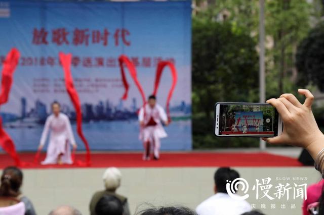 “放歌新時代”重慶市2018年秋季送演出進基層活動,在26日走進大渡口區步行街風雨舞臺和八橋鎮半島逸景社區,連演2場,觀眾們在雨中依舊熱情不減,“再來一首”的呼聲是群眾對這次文藝演出最好的褒獎。