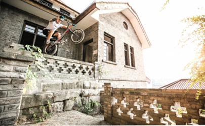 ????在獨具老重慶氣息的老巷石梯上表演,復古與青春激蕩,產生奇妙的化學反應。一招一式,趙旋給觀眾們帶來極具震撼力的專業攀爬自行車競技運動。