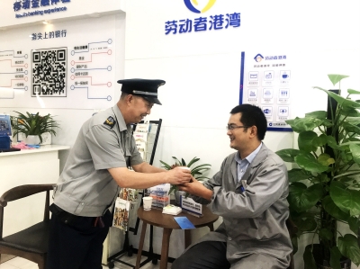 ????原來,在“勞動者港灣”正式啟動前,中國建設銀行大渡口支行錦霞街網點就已經成為周邊市民的“港灣”,經常主動為周邊市民提供便民服務,包括提供熱水、歇涼、微波爐、雨傘等服務,附近的商戶、環衛工人、城管、交警等勞動者都是建行的服務老熟人。