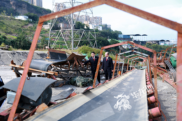 ????檢查院的工作人員正在對(duì)非法碼頭拆除后的機(jī)械進(jìn)行檢查。記者 謝鵬 攝
