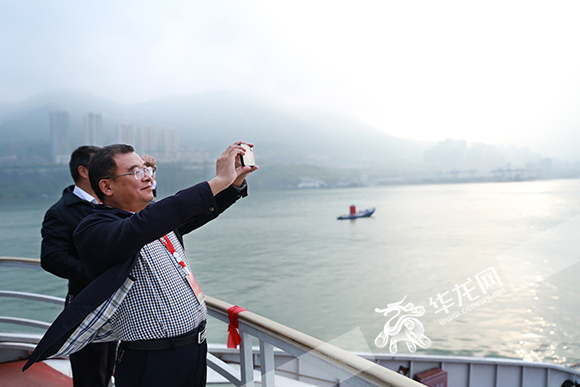 人大代表們乘船視察了2處侵占長(zhǎng)江岸線資源公益訴訟案件現(xiàn)場(chǎng)。記者 謝鵬 攝