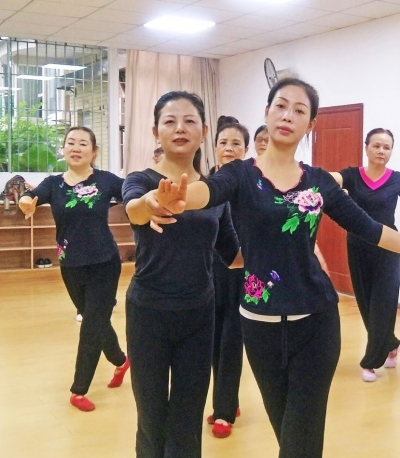 ????隊員們平均年齡四十七、八歲,都是這周邊一帶的老街坊?!白摺⒖础⒍?、接、跳……”“下巴抬高,身體往后傾……”徐利惠聲音抑揚頓挫、剛柔并濟,在她的帶領下,整個隊伍都“活”了起來。