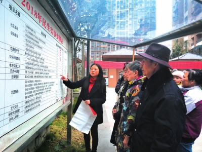 ????“這個(gè)公示欄整得好哦,把一年中要辦的實(shí)事都公示出來,而且在幾棟幾單元做什么,都一目了然的,我哪怕沒怎么讀過書,也看得清清楚楚。”居民劉婆婆滿意地告訴記者。據(jù)了解,為充分發(fā)揮居民的參與權(quán)、知情權(quán)和監(jiān)督權(quán),今年社區(qū)決定把16條年度民生實(shí)事主動(dòng)“曬”給居民看,讓居民參與監(jiān)督“評(píng)”效果,并加緊落實(shí),隨時(shí)公開進(jìn)展情況。“公示欄上,沒完成的項(xiàng)目居民會(huì)催,完成了的項(xiàng)目居民會(huì)評(píng),如果沒有讓居民滿意,居民也會(huì)把貼紙撕掉。所以這個(gè)公示欄,對(duì)我們的工作也是一種激勵(lì)。”梁艷說道。