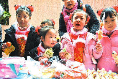????本次活動不僅有游園,還有熱鬧的“廟會一條街”。雖然場地有限,但是在社區工作人員和幼兒園老師的布置下,小小的廟會便完整地呈現在大家面前。猜燈謎,逛廟會,大家不亦樂乎。“走過路過不要錯過啦,糖葫蘆一塊錢一串!”“看一看,瞧一瞧,這里的小玩具真好玩哦!”小朋友們當起小老板,吆喝著,叫賣著,像模像樣。猜燈謎現場也熱鬧非凡,孩子們和家長一起認真地看著寫在紅紙上的燈謎,在手里比劃著。