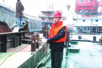 ????曾小波,是重慶中交港口公司的一位躉船水手,主要負責躉船移泊、船舶靠泊,離港及人員躉船等作業的安全工作和安排、組織協調船舶貨物的裝卸中的各環節工作。今年,是曾小波從事躉船水手的第4個年頭。然而他與江水的淵源卻已近20年。