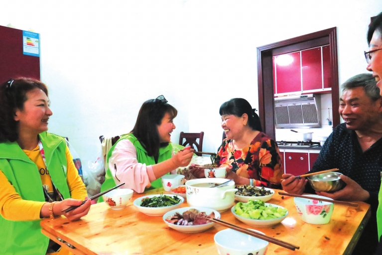 ????原來,這群“兒女”是社區(qū)工作者和志愿者。他們自愿組隊買了一些菜,來到黃阿姨家中,做了一頓溫暖有愛的大餐,并與老人共進午餐。