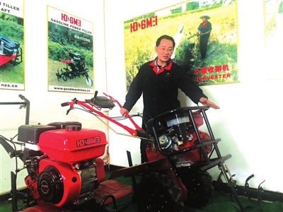 ????同樣是微型耕作機,看上去大同小異,但仔細觀察卻能發(fā)現(xiàn)不同款式之間的差別。“這是我們最新款的汽油微型耕作機,除了在色彩造型上有變化之外,它最大的不同是在底部新增了一塊擋沙板,可以減少機器故障的概率。新增擋沙板的靈感源于摩托車,而將其運用在農(nóng)用機械領(lǐng)域,算得上是一個創(chuàng)新。”公司總經(jīng)理沈洪彬介紹說。
