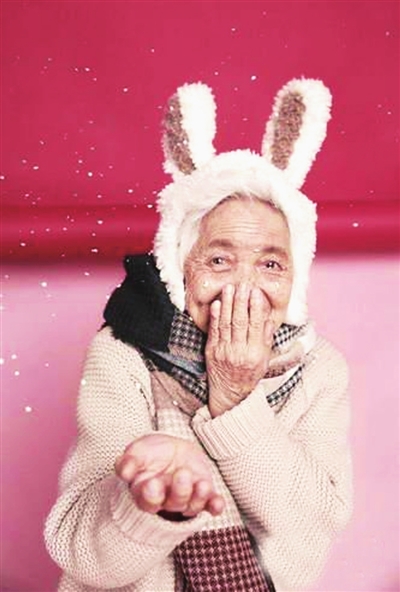 ????今年的女生節(jié)期間,一組特別的照片在網(wǎng)絡(luò)走紅:一位老奶奶身著米色毛衣配上紅格子百褶裙,帶著毛茸茸的兔耳朵帽子,對著鏡頭或大笑或捂嘴,時而俏皮地吐舌頭,時而用嘴叼起奶片糖,兩只手比著剪刀,勾著腳尖……這組少女系寫真主角正是一名八旬的老奶奶。