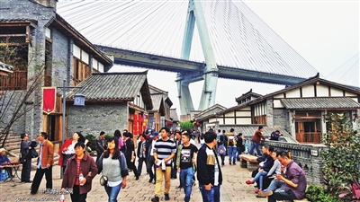 ????清明懷古憶鄉(xiāng)愁,義渡古鎮(zhèn)人氣旺。清明小長(zhǎng)假期間,義渡古鎮(zhèn)已成為市民出游關(guān)注的新熱點(diǎn),古鎮(zhèn)接待游客5.3萬人次,同比增長(zhǎng)180.42%。古鎮(zhèn)內(nèi)的傳統(tǒng)建筑,馬桑溪大橋、老成渝鐵路、老碼頭等景觀,一臺(tái)一角,一草一木,都訴說著悠久的歷史風(fēng)情,吸引了不少市民拍照留念。古鎮(zhèn)各商家也適時(shí)地推出優(yōu)惠促銷活動(dòng),吸引游客前來休閑、消費(fèi)。