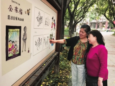 ????“社區為大力弘揚中華傳統美德,在文化宣傳欄上做足功夫,因地制宜拓展文化宣傳陣地,打造具有社區特色的‘遵德守禮文化墻’,在寓教于樂中撒播文明,以獨特的風格、親近的方式提升社區文化品質。”錦鳳社區工作人員羅永虹介紹,今年社區走出了一條精神文明建設的新路子,邀請社區書畫協會的成員們,在小區宣傳欄里畫上了構思巧妙、寓意深刻的思想道德教育漫畫,內容涵蓋健康科學、孝老愛親、鄰里和諧、愛護環境、反腐倡廉等內容。