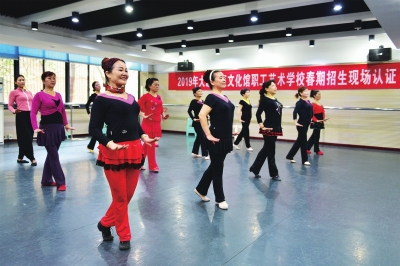 ????(記者 楊宇豪)4月9日上午,區(qū)文化館的排練廳內(nèi)樂曲聲聲,十余名舞蹈愛好者在舞蹈老師的帶領(lǐng)下翩躚起舞。這個舞蹈班級的成員平均年齡約六十歲,但在培訓中,她們個個熱情高漲、精神抖擻,每個動作都做得非常認真。