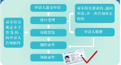 ????2014年9月全面啟用的電子往來港澳通行證(樣本)在哪兒申請?簽發流程是怎樣的?請看下圖: