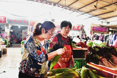 ????“這個包谷還可以,聞起很香。”記者看到,市場上,許多市民忙著把玉米“外衣”剝去,查看玉米的品相。市民楊女士站在菜攤兒前挑選玉米,她挑得很仔細,一會兒用手捏捏玉米粒,一會兒撥弄一下玉米頂端的須。她告訴記者:“家里孩子很喜歡吃煮熟的玉米,之前在街上買的都是用老的干玉米加些糖煮的,現在新包谷上市了,雖然貴點,還是要買點嘗一嘗。”