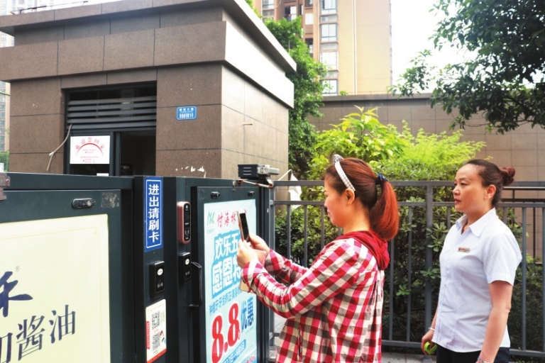 ????采訪中,物業(yè)管理人員正在熱情地為居民介紹智能門禁系統(tǒng)。“你看,你的手機(jī)沒有經(jīng)過后臺(tái)認(rèn)證,掃碼是開不了門的,你看我的手機(jī)經(jīng)過后臺(tái)認(rèn)證,它才會(huì)識(shí)別,然后開門。”