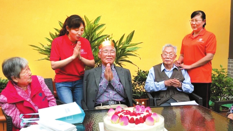 ????活動現場到處是老人們開朗的笑聲。院子里,新栽種的花草郁郁蔥蔥,為養老服務中心增添了不少“家”的生趣。老人們圍坐在一起,正和工作人員一起唱歌、聊天、分享生日蛋糕。說起這個處處充滿溫暖的“新家”,老人們贊不絕口。