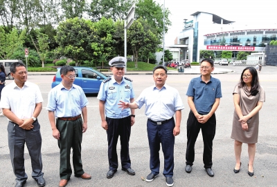 ????“大家辛苦了!”王俊、馬春一行來到建橋大道執勤點,慰問了在高溫酷暑下堅守崗位的交巡警,向他們表示衷心的感謝和誠摯的問候。