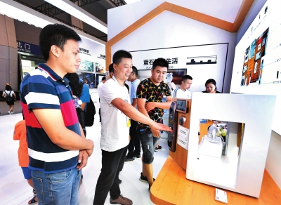 8月26日,智博會(huì)觀眾在大渡口展區(qū)參觀體驗(yàn)