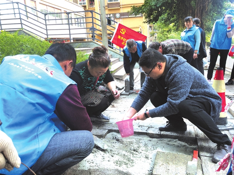 ????在入戶走訪過程中,很多居民向社區反映了這個問題。社區對此很重視,并結合志愿服務活動,由黨員認領崗位,對松動的人行道路進行修復。