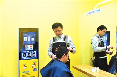 ????陳文強介紹,“易剪寶”快剪理發店是連鎖公司,總部設在廈門,自己是公司的聘用理發師。理發費用按提成算,每次理發由理發師和公司各得5元。如果當月生意不好,公司會給予理發師一定的底薪補助。