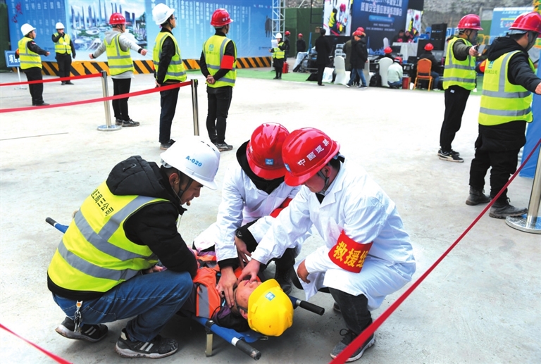 ????“有人觸電啦!”建筑工地9號樓前,隨著砰的一聲響,一位工人模擬觸電倒地,應急演練正式開始。安全員發現情況后,一邊高聲提醒周邊作業人員不要靠近,一邊用木棒挑開漏電線纜。項目負責人接訊后立即指示拉掉電閘,撥打120,應急救援組馬上展開前期自救。七八分鐘后,“傷員”得到初步搶救,救護車趕到了現場……