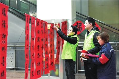 ????活動(dòng)現(xiàn)場,區(qū)楹聯(lián)協(xié)會(huì)的書法家們揮毫潑墨,一幅幅精美的春聯(lián)和“福”字引得眾多旅客和市民爭相領(lǐng)取。“一帆風(fēng)順年年好,萬事如意步步高。”市民劉賢君接過春聯(lián),高興地念了起來。他說,帶上春聯(lián)回家過年,新的一年一定會(huì)順順利利、心想事成。
