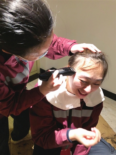 ????在武漢的第一天,我們接受了一場特殊的“戰(zhàn)前儀式”——理發(fā)。沒有專業(yè)的理發(fā)師,也不是以美觀為目的,將前額與鬢角剃了個(gè)精光。