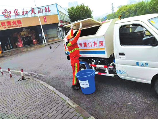 同時,大渡口區固廢公司規范廢棄口罩和隔離區生活垃圾收運處置流程,防止造成二次污染。公司在公廁、垃圾站、步行街、廣場等公共場所和人口集中區科學設置廢棄口罩回收專用容器。目前,區固廢公司共設置廢棄口罩專用垃圾桶80個,成立由4名收運人員和2臺專用車輛組成的廢棄口罩收運突擊小組,對廢棄口罩進行專人專車收運。針對全區企事業單位、社區、物業小區的廢棄口罩,公司則進行不定時收運,確保廢棄口罩收運工作全覆蓋。