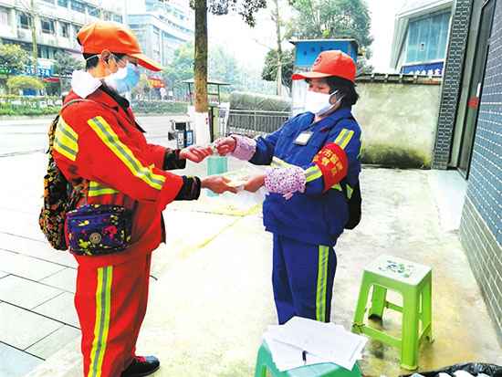 3月1日,天剛蒙蒙亮,環衛工人陳治剛準時來到自己的工作崗位,做好個人防護,對責任路段進行徹底清掃和巡回保潔。清理果皮箱、抹洗護欄、清掃路面……在陳治剛看來,疫情當前,城市少了些熱鬧和喧囂,她卻多了份責任與擔當,她說:“清掃垃圾也是在消滅病毒,這是我的工作,也是我的責任。”