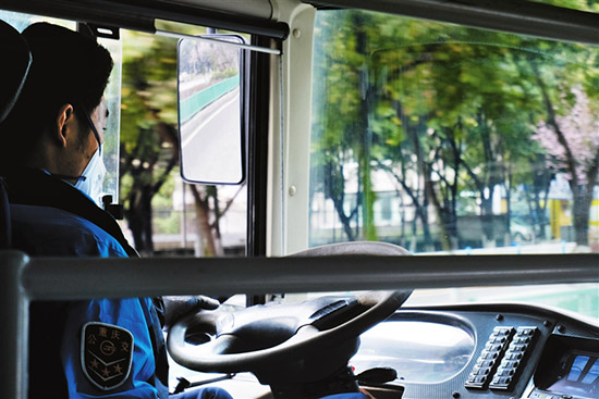 3月1日周日,春暉路,雖然車(chē)上人少,路上車(chē)少,但公交車(chē)司機(jī)仍然兢兢業(yè)業(yè)地保證著線路的安全運(yùn)行。