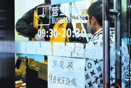 2月29日周六,終于等到步行街商圈實(shí)體店開(kāi)門(mén)營(yíng)業(yè),吳女士第一時(shí)間選購(gòu)并穿上自己心儀的衣服。