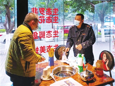 ????據悉,為給消費者提供安全的就餐環境,區市場監管局要求餐飲服務單位在提供堂食服務時,堂食大廳僅開放50%的接待量,單桌同時用餐顧客人數不超過座位數的50%;對共同就餐人員,至少記錄其中一名客人的姓名和聯系方式;包房(包廂)就餐,每個包房(包廂)只開一桌,嚴禁使用無窗戶、空氣對流不暢的密閉性包間;桌與桌之間距離不小于2 米,倡導一人一桌或隔桌用餐;長條桌同排顧客隔位相坐、單向相坐,圓桌顧客隔位相坐,面對面距離不小于1米。